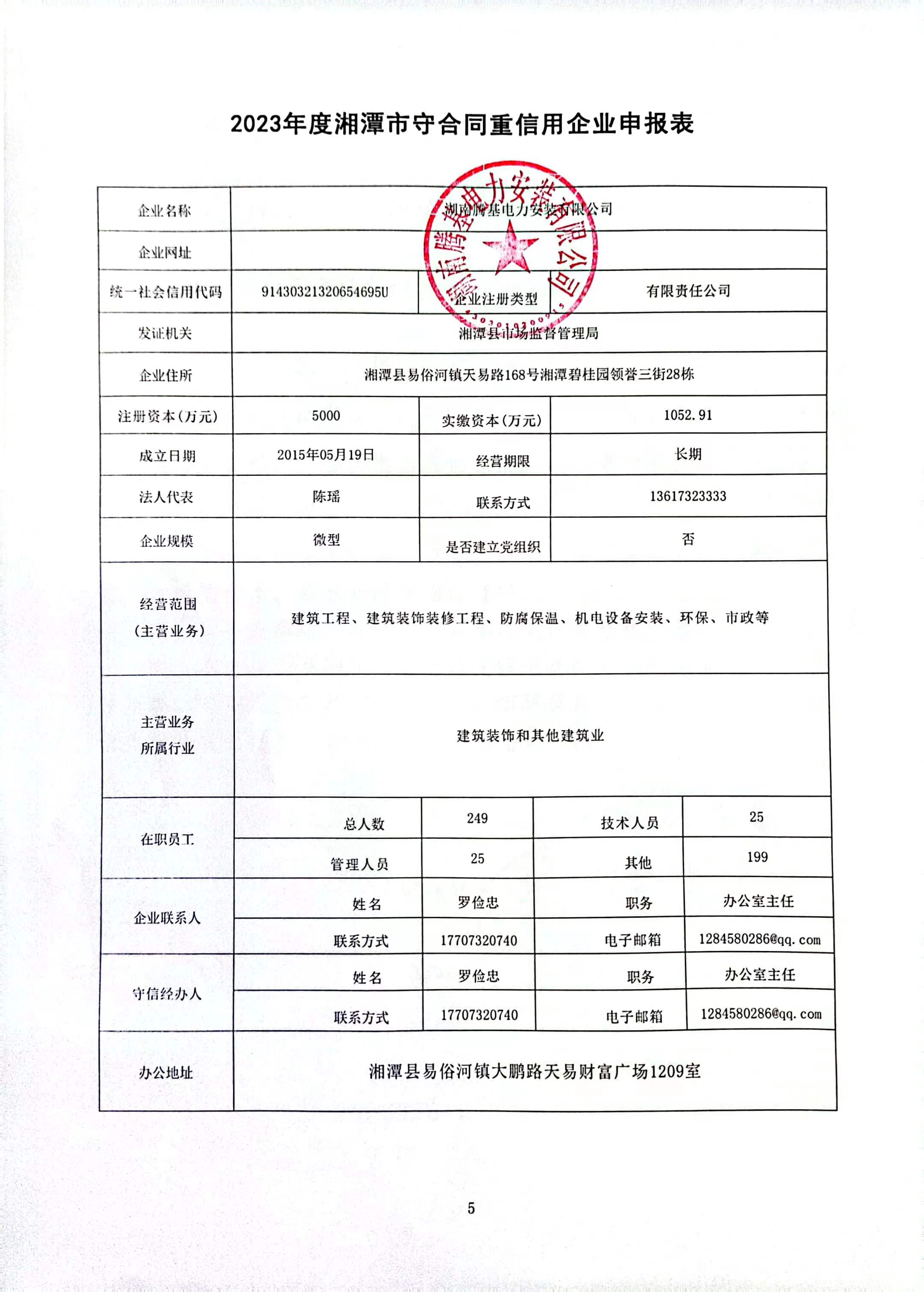 本企業(yè)根據(jù)《湘潭市守合同重信用企業(yè)申報(bào)規(guī)定》等編制 2023 年度企業(yè)信用報(bào)告書,并保證本報(bào)告書內(nèi)容真實(shí)、準(zhǔn)確、完整。