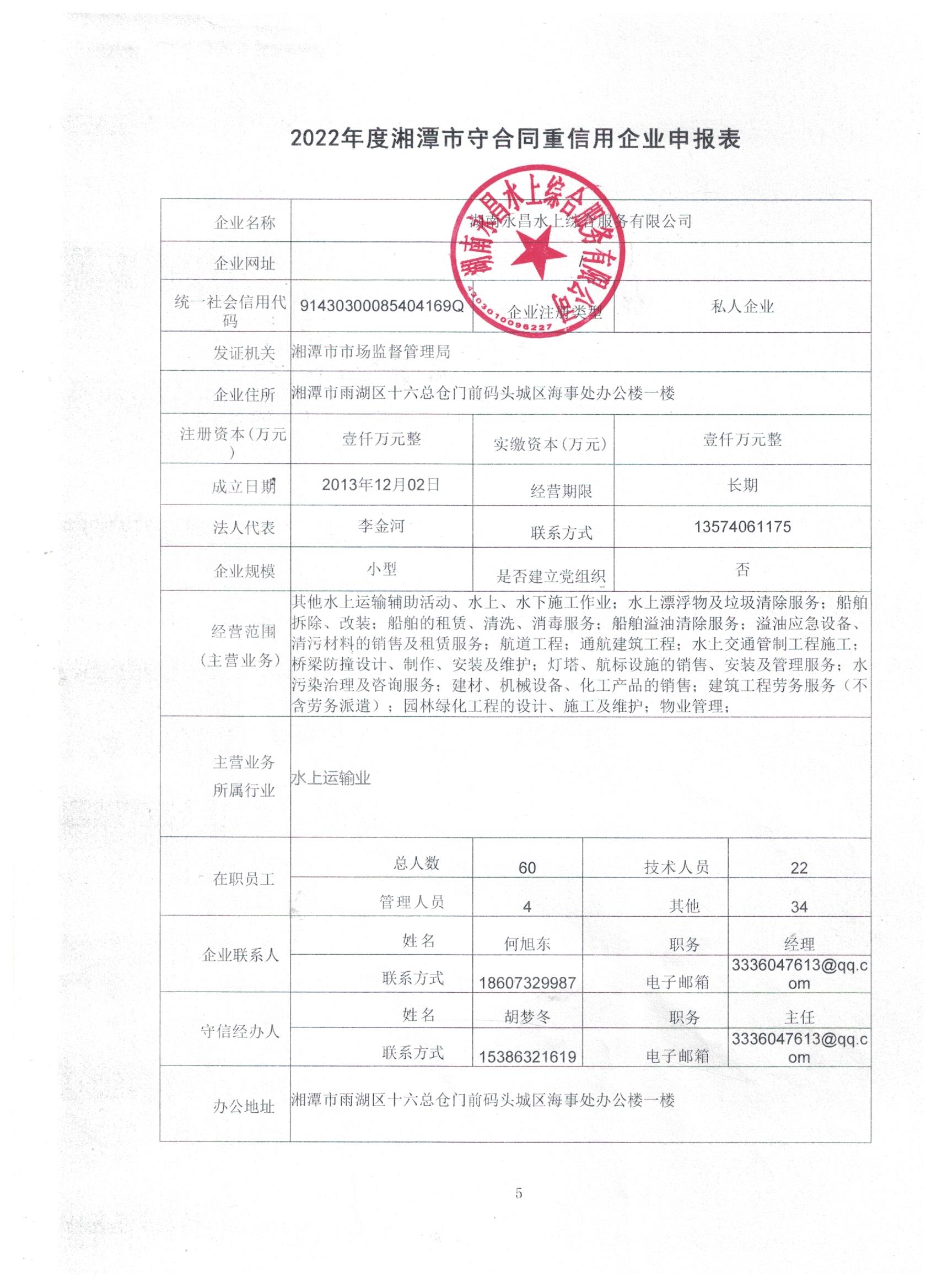 本企業(yè)根據(jù)《湘潭市守合同重信用企業(yè)申報規(guī)定》等編制 2022 年度企業(yè)信用報告書,并保證本報告書內(nèi)容真實、準確、完整。