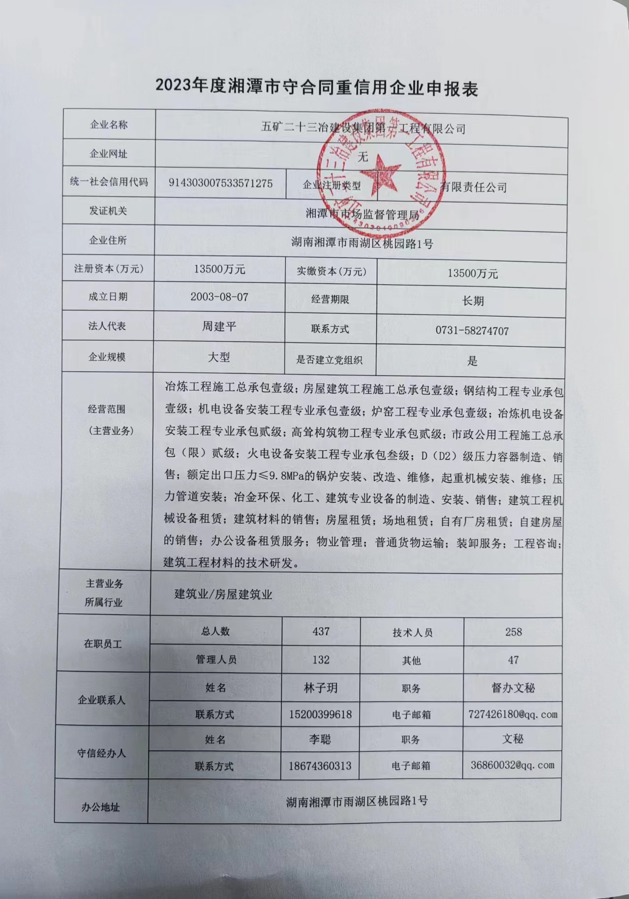 本企業(yè)根據(jù)《湘潭市守合同重信用企業(yè)申報規(guī)定》等編制 2023 年度企業(yè)信用報告書,并保證本報告書內(nèi)容真實、準(zhǔn)確、完整。
