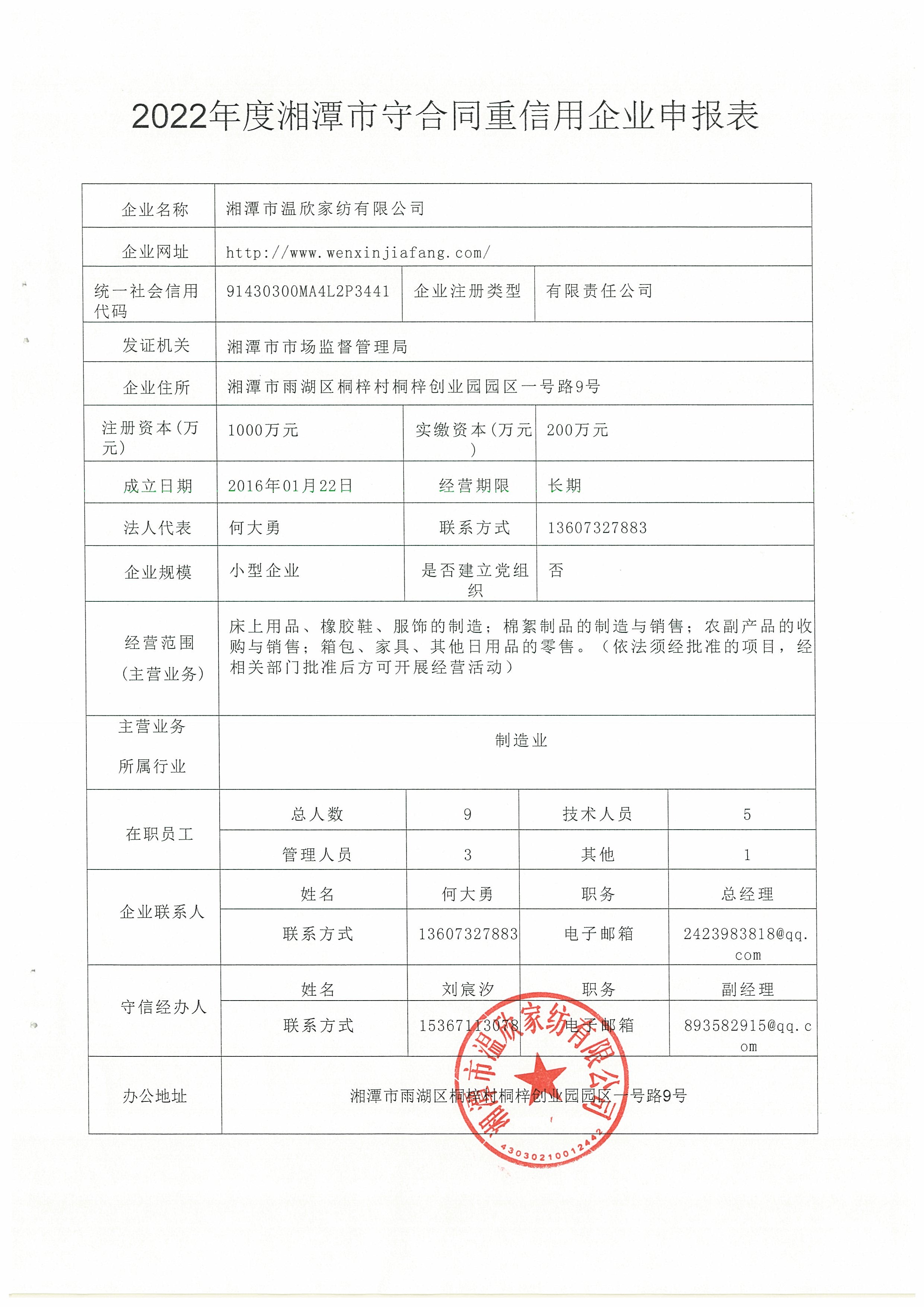 本企業(yè)根據(jù)《湘潭市守合同重信用企業(yè)申報(bào)規(guī)定》等編制 2022 年度企業(yè)信用報(bào)告書,并保證本報(bào)告書內(nèi)容真實(shí)、準(zhǔn)確、完整。