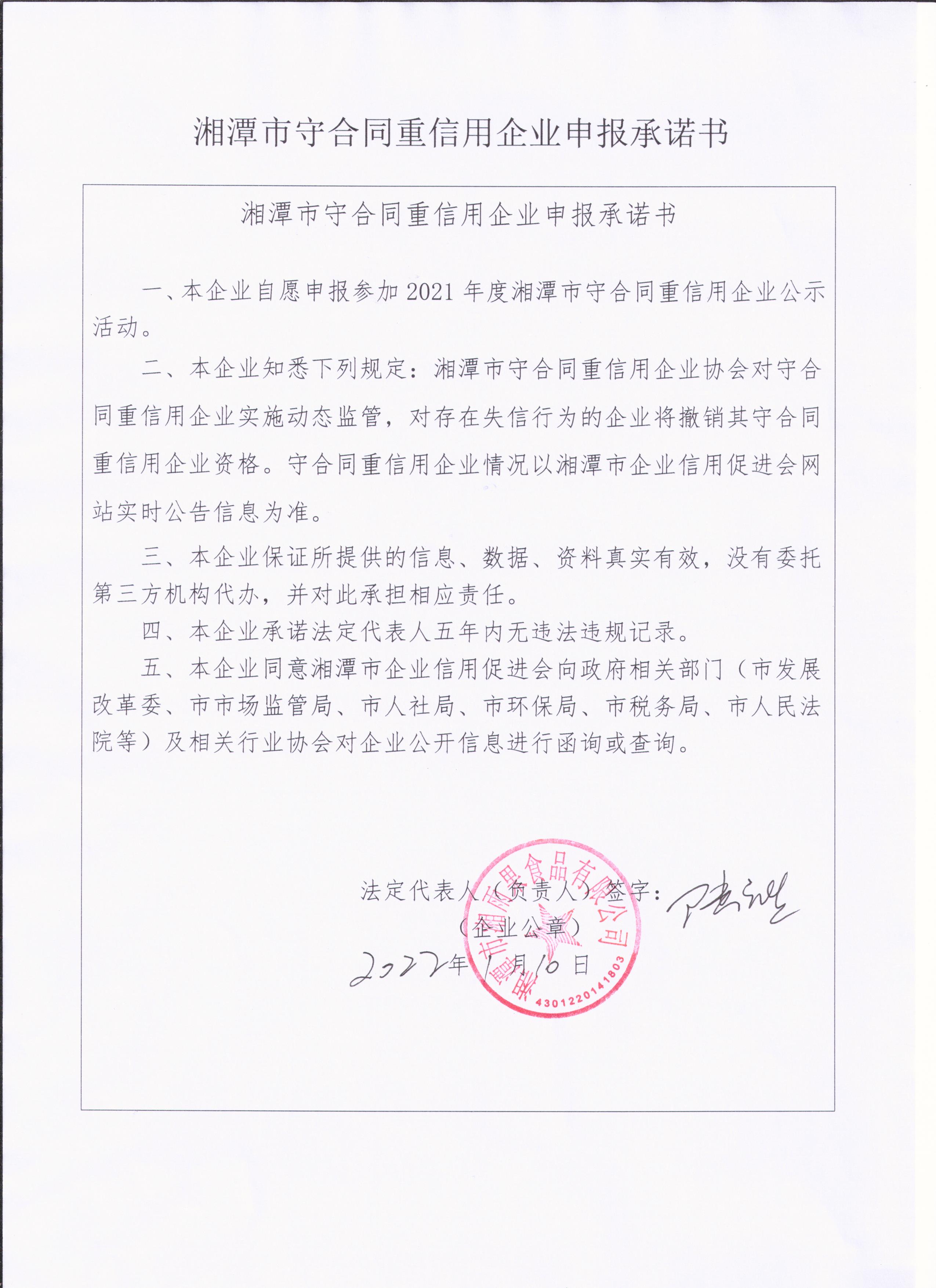 本企業(yè)根據(jù)《湘潭市守合同重信用企業(yè)申報(bào)規(guī)定》等編制 2021 年度企業(yè)信用報(bào)告書(shū),并保證本報(bào)告書(shū)內(nèi)容真實(shí)、準(zhǔn)確、完整。