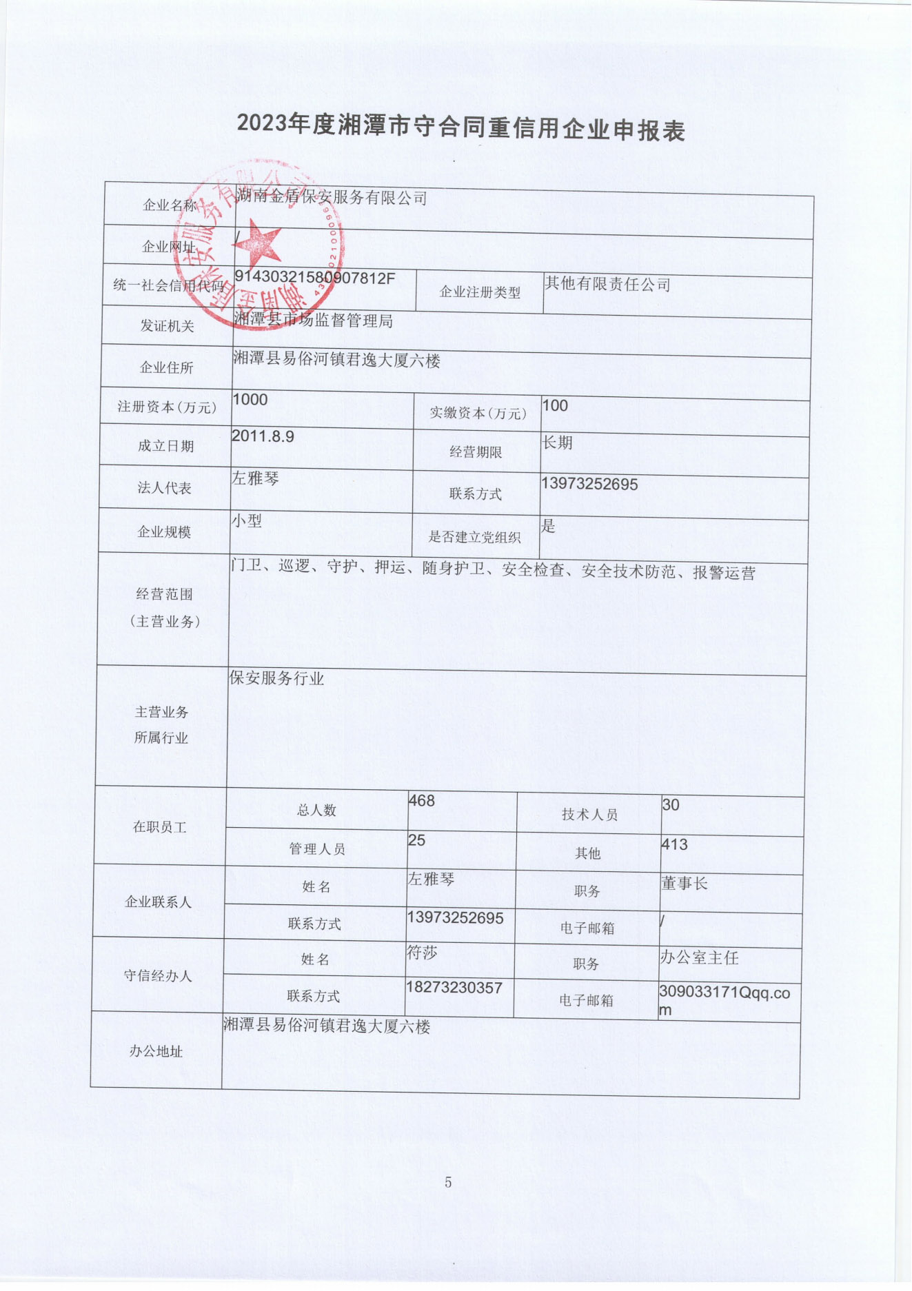 本企業(yè)根據(jù)《湘潭市守合同重信用企業(yè)申報(bào)規(guī)定》等編制 2023 年度企業(yè)信用報(bào)告書,并保證本報(bào)告書內(nèi)容真實(shí)、準(zhǔn)確、完整。